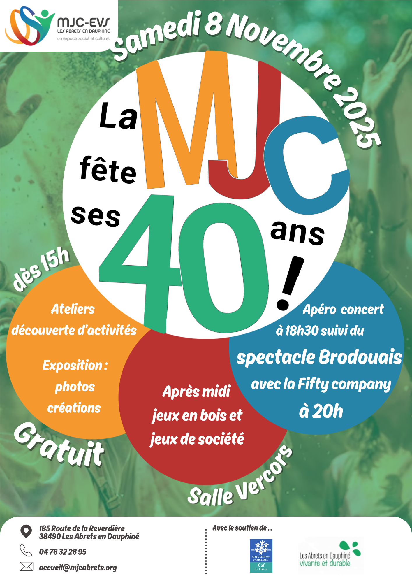 La MJC fête ses 40 ans samedi 8 novembre 2025 !!!!! 🥳