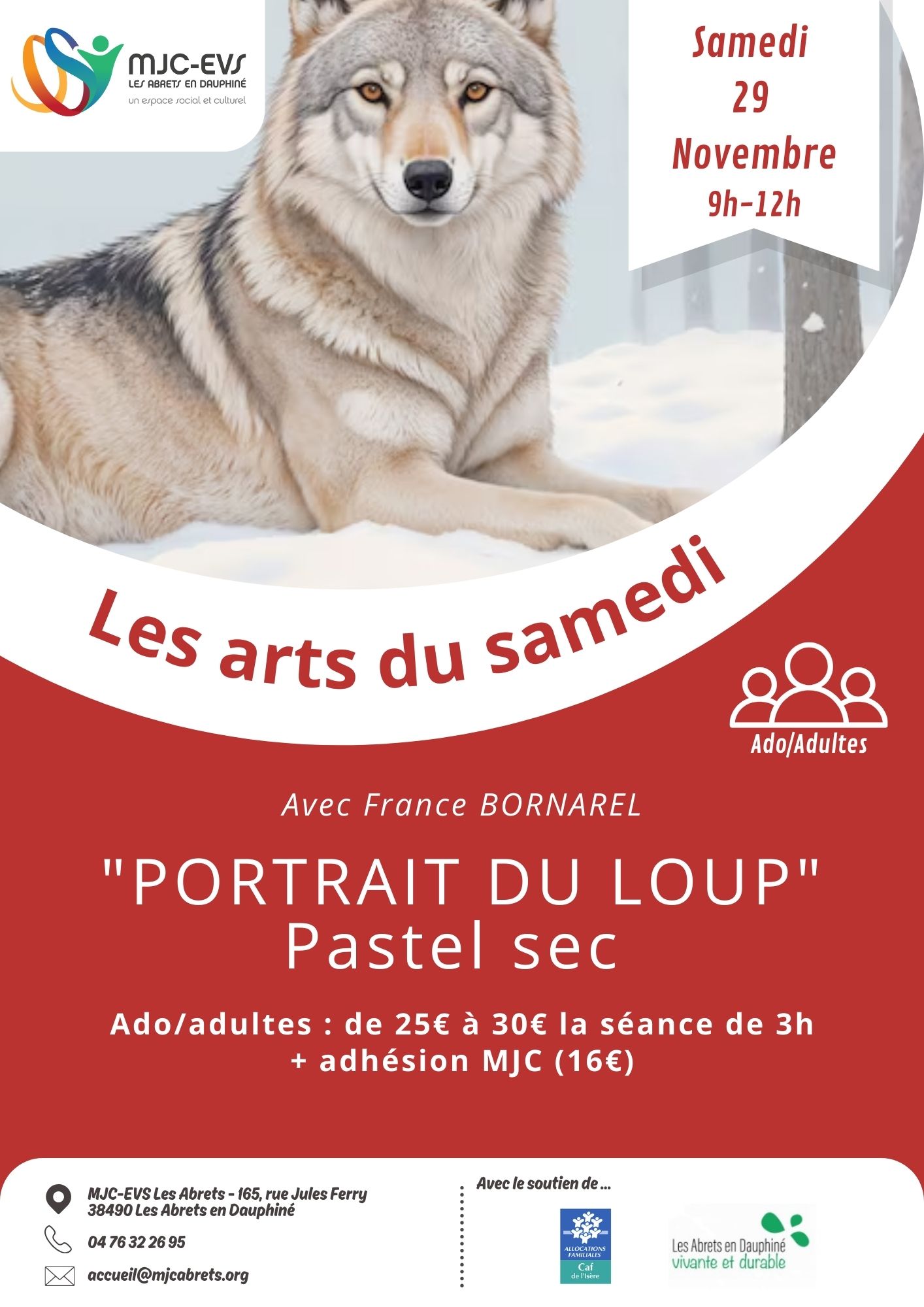 ✏️Ce samedi 29 novembre de 9h à 12h, initiation au pastel sec avec pour thème “Portrait du loup”. 🐺